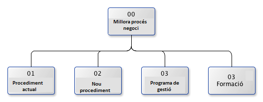 La representació dels lliurables en forma d'EDT ens dona la base per poder iniciar l'elaboració de l'EDT definitiva. Seguint amb l'exemple anterior, cream una EDT a partir dels lliurables, agrupant-los en dos nivells (suficient per a un projecte senzill):