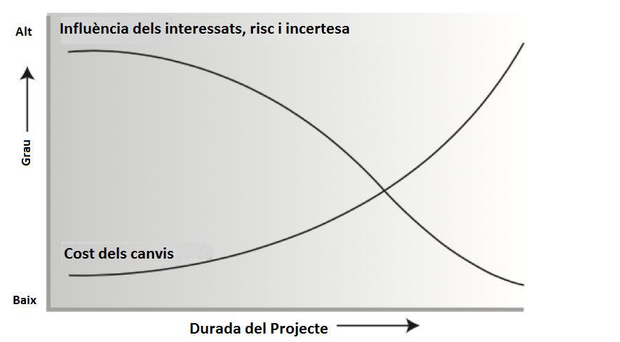 Els interessats poden influir sobre el projecte i els seus lliurables. Per a l'èxit del projecte resulta fonamental identificar els interessats des de l'inici, per potenciar les influències positives i mitigar els potencials impactes negatius. L'evolució típica de la influència dels interessats al llarg de la vida del projecte és semblant a l'evolució dels riscs i inversa al cost dels canvis: