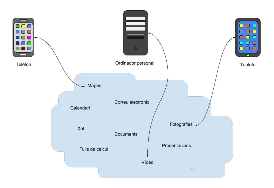 A la pràctica, l’accés a les eines al núvol es fa des de dispositius connectats a Internet mitjançant un explorador web, o bé una aplicació instal·lada al nostre dispositiu (el que es coneix popularment com una app).
