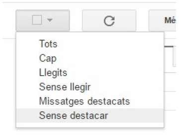 - Selecció: Possibilita seleccionar missatges: tots, cap, llegits…