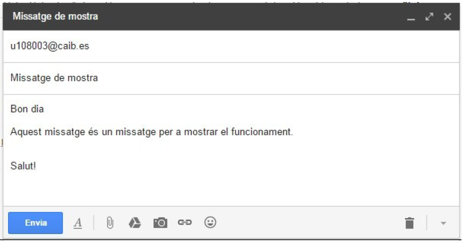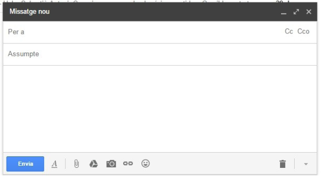 - Espai en blanc davall de l’assumpte: Hi podem escriure el cos del correu (text, imatges, etc.).