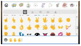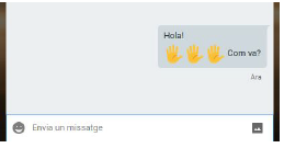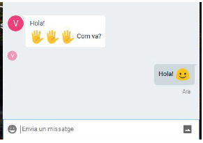 A més d’enviar text, a les converses hi podem enviar altres elements que enriqueixen la comunicació. Per exemple, podem enviar emoticones. Per accedir a les emoticones (emojis), hem de clicar la cara somrient situada a l’esquerra del camp de text per conversar.