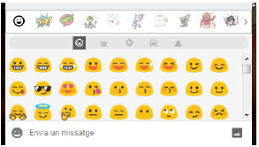 A la part superior de la finestra de les emoticones hi ha diferents categories. Habitualment, es fan servir les emoticones bàsiques (categoria de la cara somrient). No ens estendrem en aquest apartat, però podem explorar els diferents tipus d’emoticones i utilitzar-les a les nostres converses.