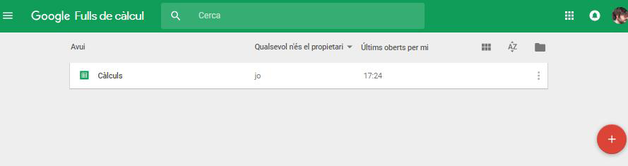 Per entrar a l’aplicació, cal accedir a https://docs.google.com/spreadsheets amb les credencials del compte de Google. En entrar-hi, hi ha la pantalla següent: