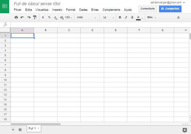 Quan el full de càlcul és nou, apareix com un full de càlcul sense títol. Per canviar-lo, s’hi ha de fer clic.