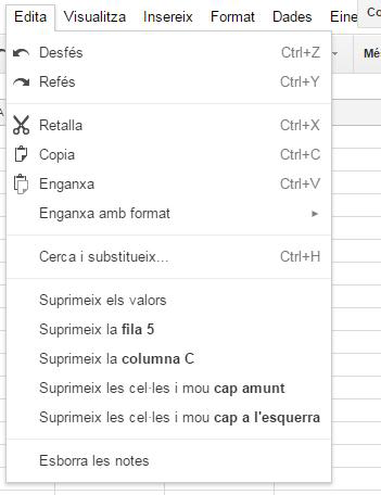 - Suprimeix la columna (lletra): La columna s’elimina del full de càlcul.