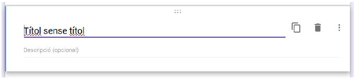 Per afegir-ne un, hem de pitjar el botó «Afegeix un títol i una descripció» situat al menú de la part dreta que apareix quan seleccionam un element del formulari. El títol i la descripció apareixeran després de l’element seleccionat.