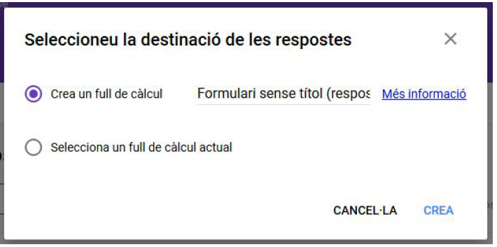 Si feim clic al botó «Creació de fulls de càlcul», s’obre una finestra emergent amb diferents opcions.
