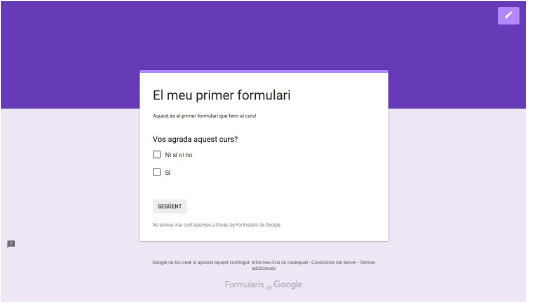Podem veure en qualsevol moment com es mostrarà el nostre formulari als destinataris finals. És important comprovar que el formulari és tal com volem que sigui abans d’enviar-lo i que les preguntes estan ben redactades.