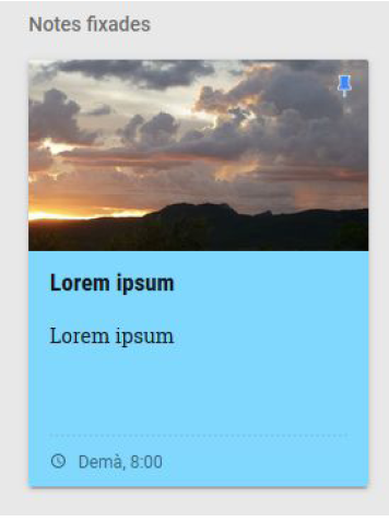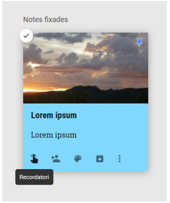 Per crear un recordatori, feim clic a la icona de recordatori (un dit amb un cercle al voltant) que hi ha a la part inferior de la nota.