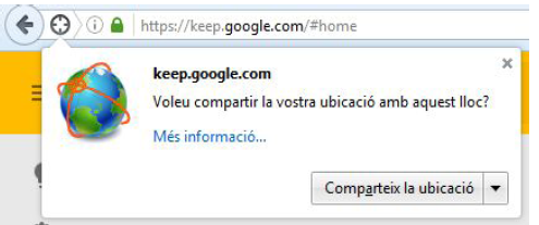 Si, en canvi, volem fer el recordatori mitjançant un lloc, Keep ens demanarà que compartim la nostra ubicació.