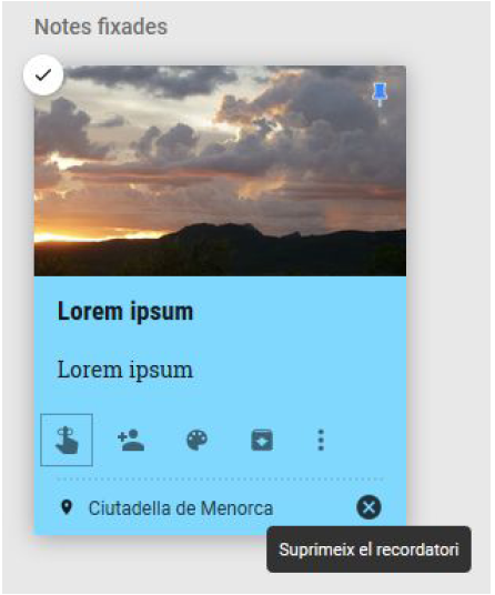 Finalment, podem eliminar els recordatoris que ja no necessitam passant-hi el cursor i fent clic a la X que apareix a la dreta.