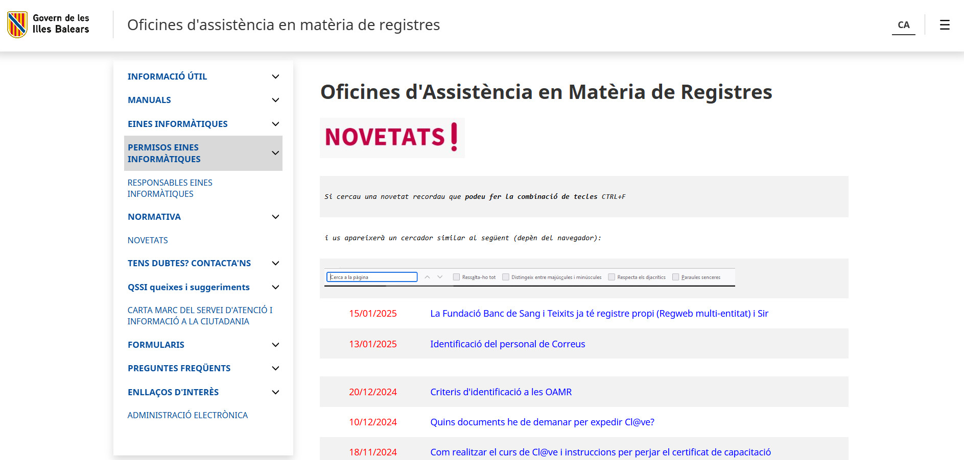 La CAIB té un microlloc informatiu sobre les oficines d'assistència en matèria de registre: