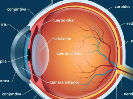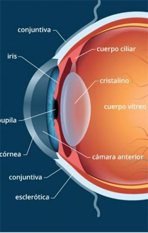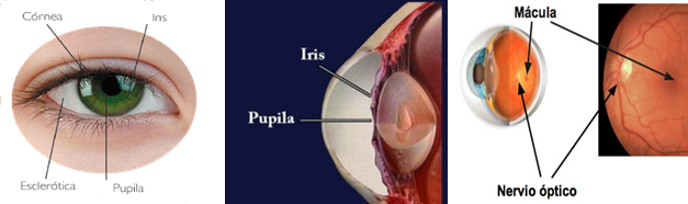 - IRIS: és la zona acolorida de l'ull i forma les vores de la pupil·la. Els seus músculs dilaten o contrauen la pupil·la per controlar la quantitat de llum que entra a l'ull.