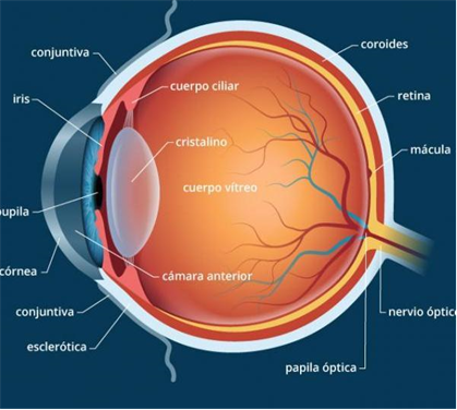 - Funció: permet enfocar correctament els objectes a diferents distàncies i protegeix la retina de la radiació UV.