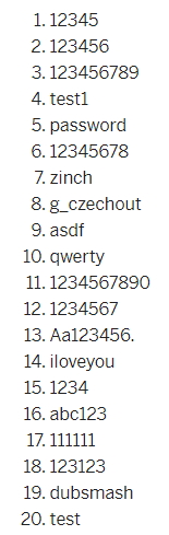 Si utilitzes noms propis o paraules de diccionari, un atacant pot esbrinar la paraula de pas en menys d'un segon. Una mostra de les 20 més usades durant l'any 2020 i, per tant, les pitjors a usar són les següents: